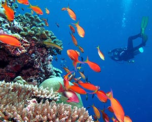 К берегу приплывают маленькие пугливые акулки и небольшие скаты, вода прозрачная, обитателей подводного царства видно хорошо. Рыбок немного, на снорклинг отвозят на катере в другие места. До соседнего рифа минут 10 езды, риф хороший, со всякой живностью, с большими черепахами.
