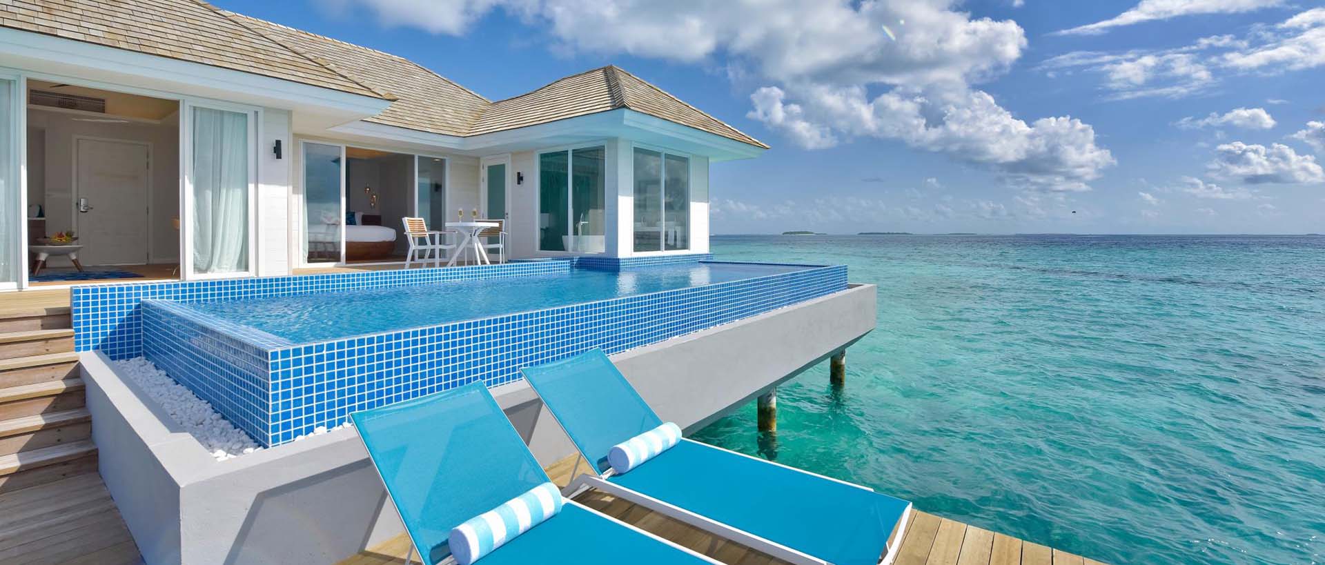 Просторные водные виллы с частным бассейном и прямым спуском в лагуну, идеально подходящие для молодоженов и романтического отдыха.